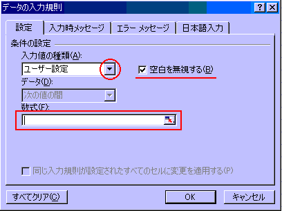 ■入力規則を数式で設定入力規則(初級9、10参照。)の設定には、ユーザー設定として数式を入力し、入力を制限することができます。