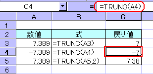 書式で表すと、TRUNC(数値, 桁数)となります。