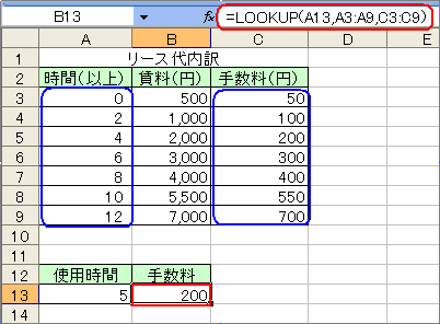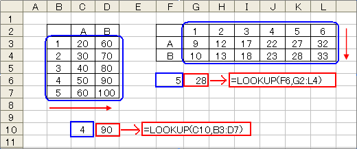 ここでベクトルや配列の意味についてこだわってしまうと、かえって難しくなりますので、単純に2つの使い方があるのだと理解してください。 書式で表すと、LOOKUP(検査値,検査範囲,対応範囲)