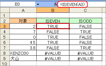 ◆使用例 下図は、ISEVENとISODDの対象に対する戻り値を比較したものです。